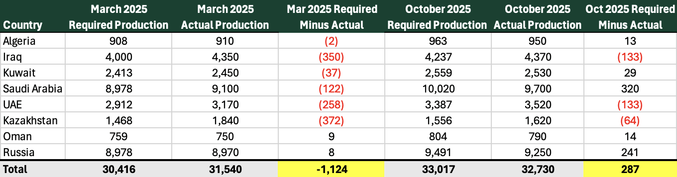 Today, the situation has flipped. OPEC+ has raised quotas so quickly that member countries can’t keep up. In October, the group as a whole produced 287 mboe/d below its required production level: