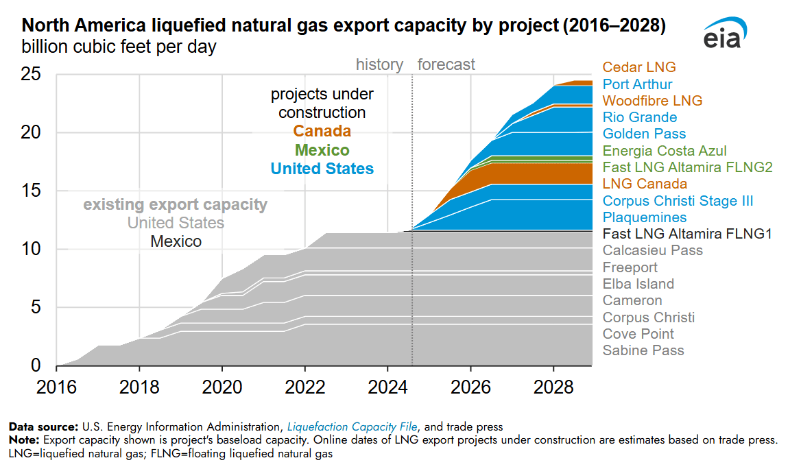Market forces are creating upward pressure on natural gas fuel prices are also rising just as turbine prices peak. The U.S. Energy Information Administration expects North American —including three Canadian projects—liquefied natural gas (LNG) export capacity to double by 2028.