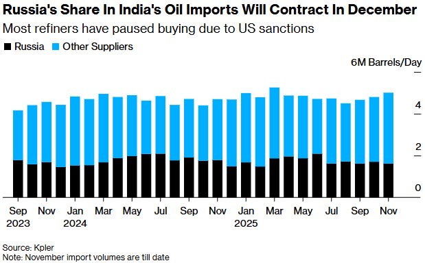 In early November 2025, Russian seaborne crude exports dropped from 3.6 million barrels per day to 2.8 million. India went from importing 1.9 million barrels per day in October to just 670,000 in the first half of November. China’s state refiners cut their direct Russian liftings in half.